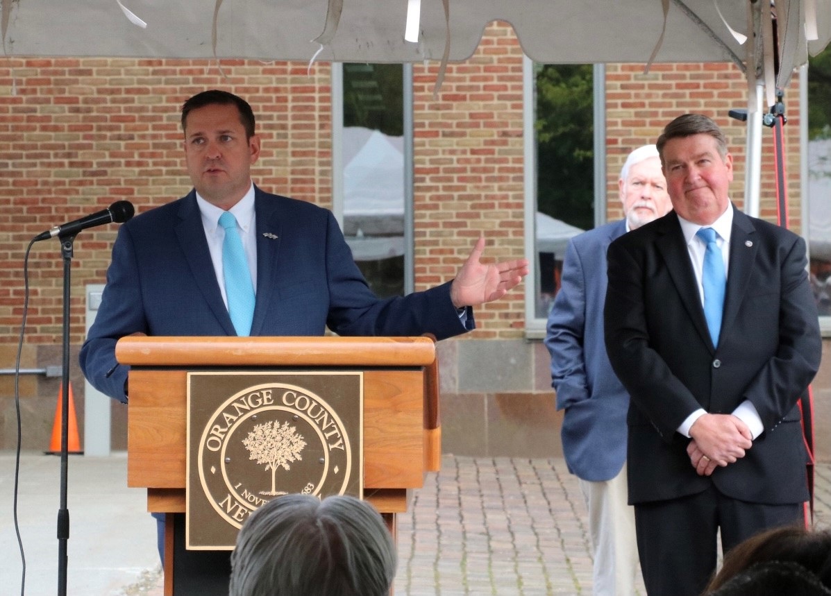 A ribbon cutting ceremony was held on opening day of the Warwick Valley Farmers’ Market on Sun., May 9. The market will be open from 9 a.m. to 2 p.m. through November in the South St. parking lot in the Village of Warwick. Pictured (from left) are: Town Supervisor Michael Sweeton; Warwick Valley Farmers’ Market Steering Committee members – Linda Moser, Annette Sanchez, co-chair Will Ashby & chairperson Cheryl Rogowski; Merchants Guild President Corrine Iurato; Warwick Chamber of Commerce President Elizabeth Cassidy; Kristin Menge’ & Village of Warwick Mayor Michael Newhard.